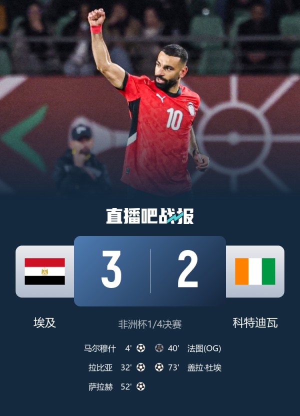 2026年01月11日 卫冕冠军出局!埃及3-2科特迪瓦进四强 萨拉赫传射马尔穆什闪击