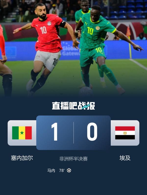 塞内加尔1-0埃及晋级决赛 马内78分钟贴地斩制胜埃及全场1射正