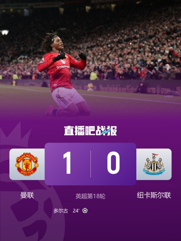 曼联首发变阵4后卫,多尔古客串边锋破门;曼联终结2轮不胜,纽卡遭3轮不胜。