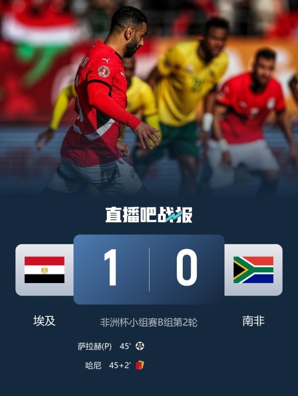 非洲杯小组赛B组第二轮,埃及1-0战胜南非,取得两连胜,也提前在B组出线。