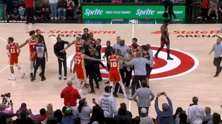 各吃1T!特雷·杨摸道苏姆屁股随后两人对峙“拥吻” 险引双方团战