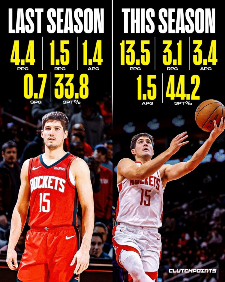 随着上场时间的增加,他的自信心也在增强,现在他在火箭队的表现已经翻倍。