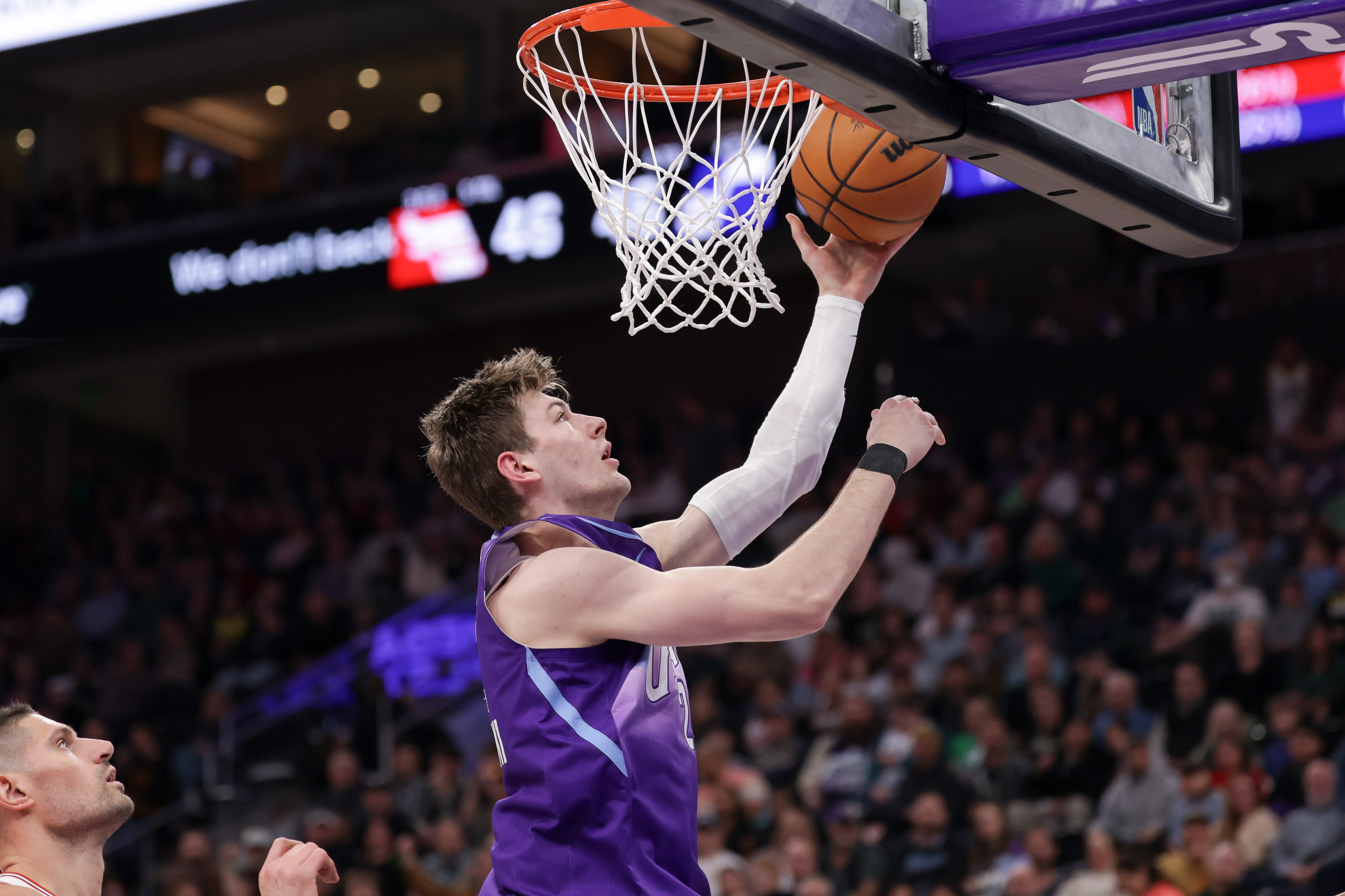 上半场,爵士中锋菲利波夫斯基表现不俗,出场18分钟9投5中,三分2中1、罚球6中3拿到14分6篮板2助攻1盖帽。