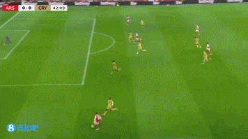 第22分钟,阿森纳前场连续的配合,禁区内马杜埃凯前插绝佳的机会被门将出击封堵↓